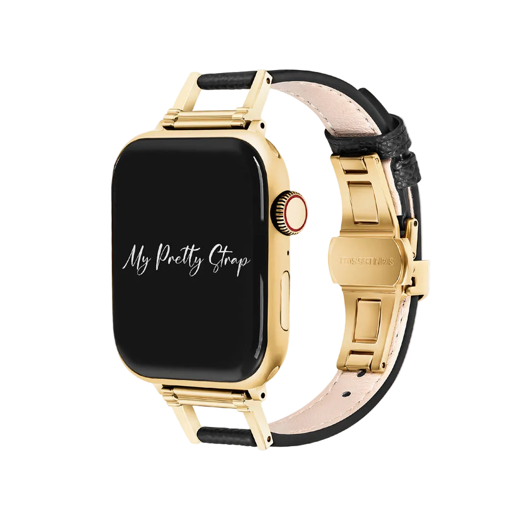 Introducing Bella Leather, the ultimate fusion of luxury and tradition in a woman's Apple Watch strap. This exquisite piece is where the timeless charm of leather meets the opulence of gold, crafting an accessory that's not just a watch strap, but a fashion statement.