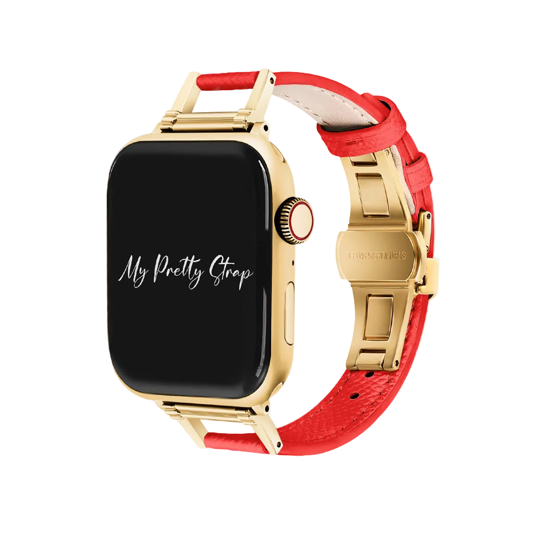 Introducing the Valentina Leather Apple Watch Strap, the embodiment of passion and sophistication on your wrist. As a special Valentine's launch, this exquisite accessory is designed to celebrate love with every detail. Crafted from luxurious red leather, the Valentina Strap makes a bold statement of both style and affection.