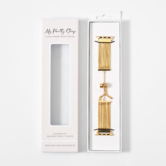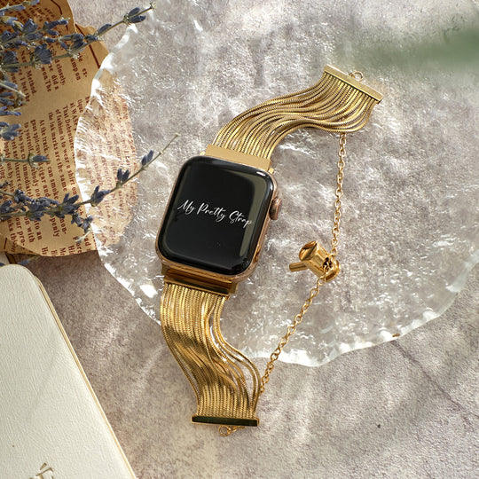 Crafted from premium stainless steel and twisted into elegant woven link chains, this watch band elevates your Apple Watch with its luxurious look & feel. Each watch band comes with its own metal adapter, designed to fit your Apple Watch seamlessly straight from the box.