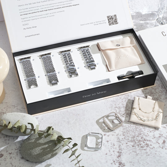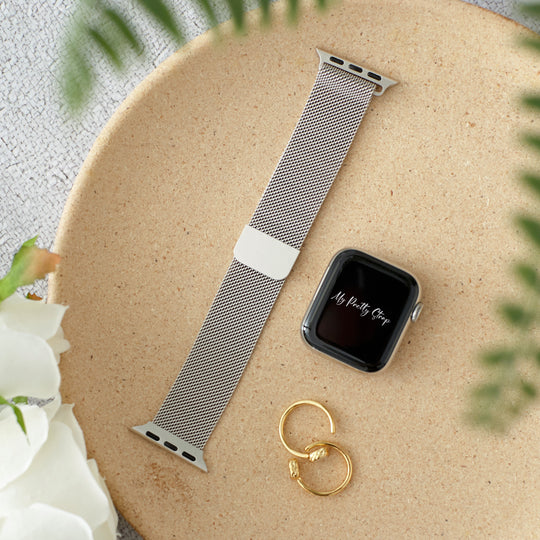 Crafted from premium stainless steel and twisted into elegant woven link chains, this watch band elevates your Apple Watch with its luxurious look & feel. Each watch band comes with its own metal adapter, designed to fit your Apple Watch seamlessly straight from the box.